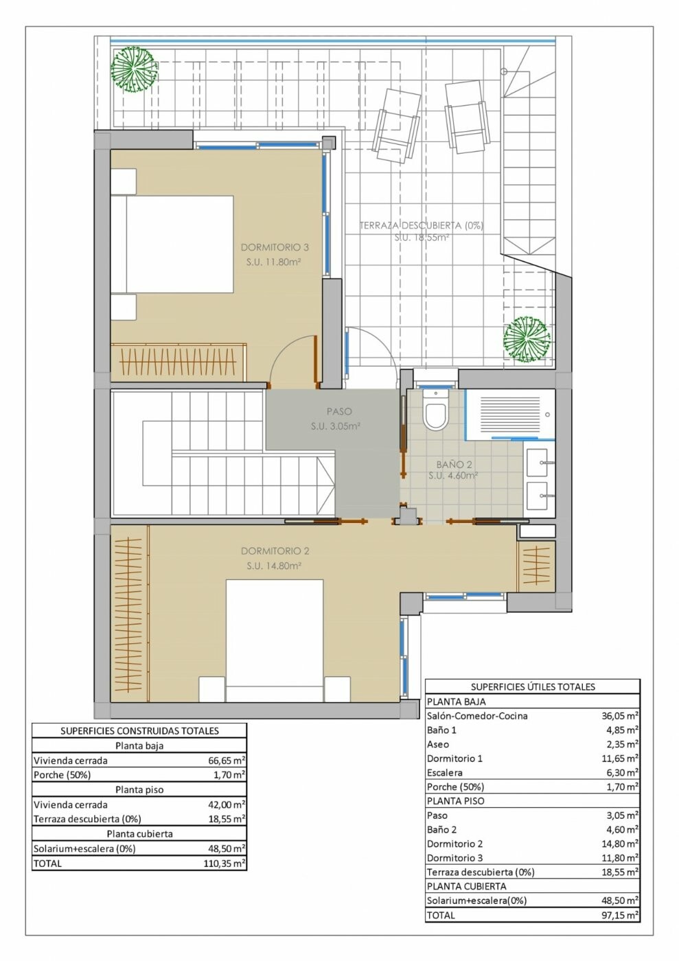 НОВЫЕ ТАУНХАУСЫ В РОХАЛЕСЕ Новые современные таунхаусы в Рохалесе. Таунхаусы имеют 3 спальни, 2 ванные комнаты, кухню открытого плана, гостиную с прямым выходом на террасу, парковочное место. Возможность установки солярия и частного бассейна за дополнительную плату. Поблизости расположены 3 поля для гольфа, а пляжи с голубым флагом находятся в 10 м...инутах езды. Рохалес - это прекрасная деревня со всеми услугами, такими как супермаркеты, аптеки, банки, рестораны и природный парк, расположенный очень близко к виллам. Поблизости есть несколько полей для гольфа, а также аквапарки в соседних Рохалесе и Торревьехе. Аэропорты Аликанте и Мурсии находятся в 45 минутах езды.