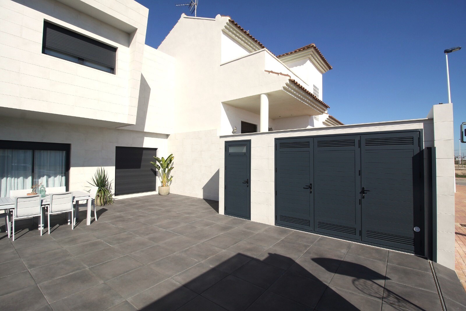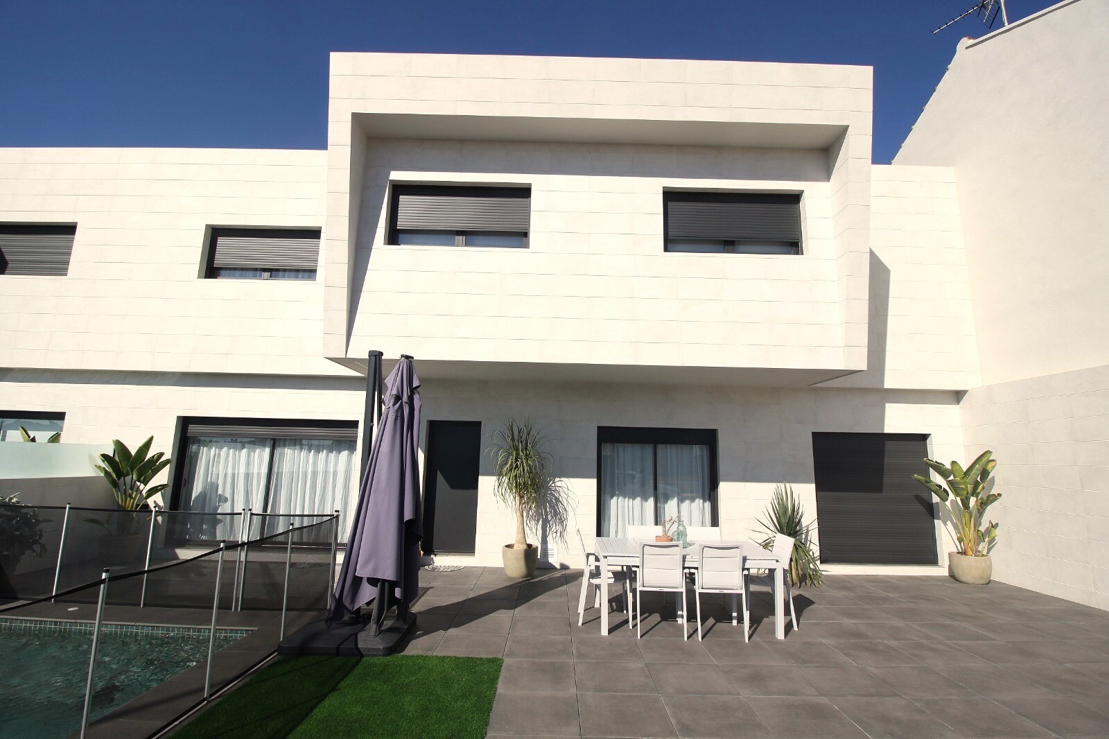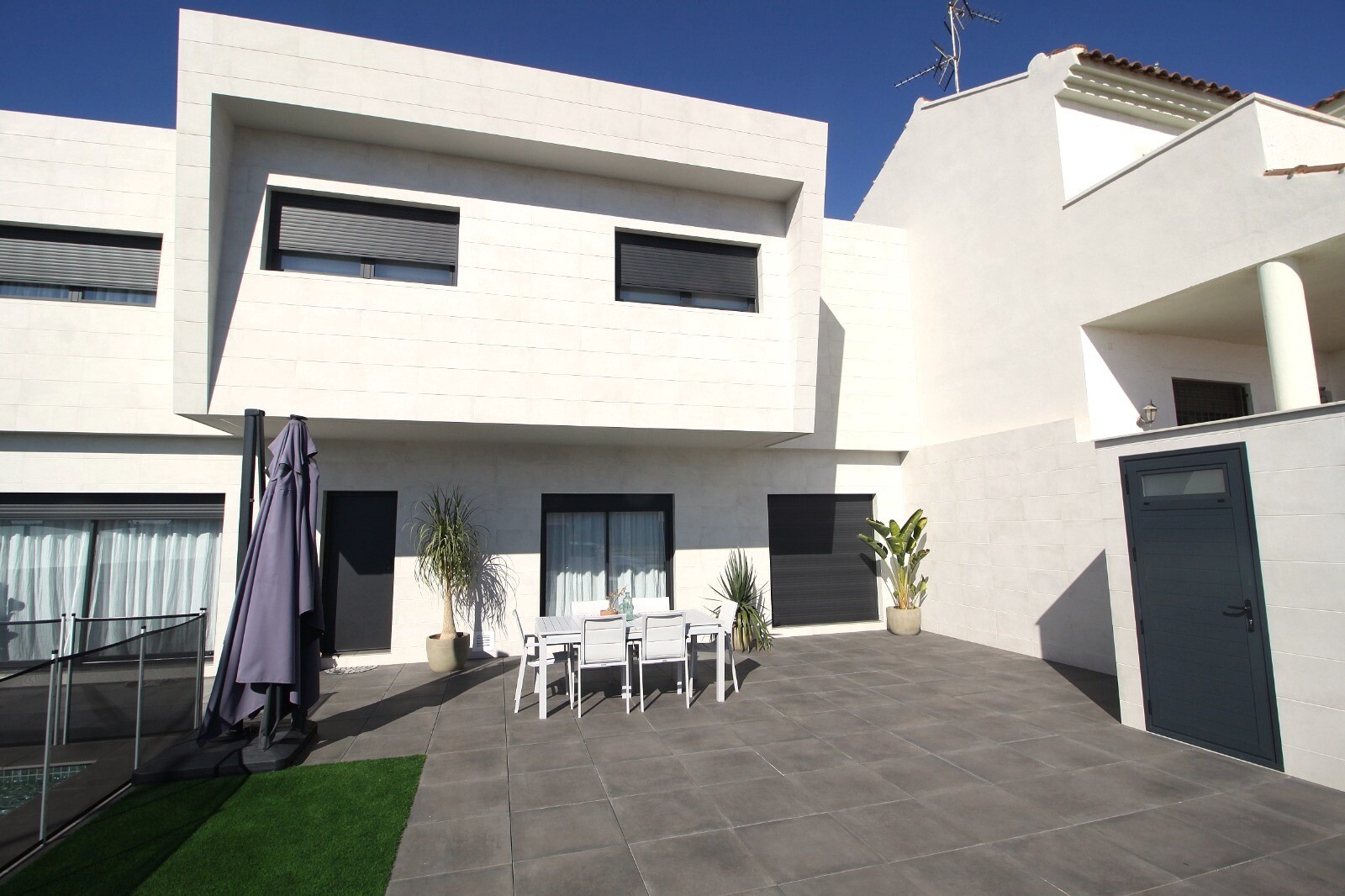 Недавно перепроданный двухквартирный таунхаус в Сан-Педро-дель-Пинатар с 4 спальнями, 2 ванными комнатами и туалетом на открытом воздухе у бассейна 6х4 м со встроенным джакузи. Дом расположен в 3 км от Средиземного моря и в 500 м от центра. Дом полностью меблирован, есть полы с подогревом, кондиционер и кухонная техника. До аэропортов Корвера и Али...канте можно добраться за 30 и 50 минут соответственно.