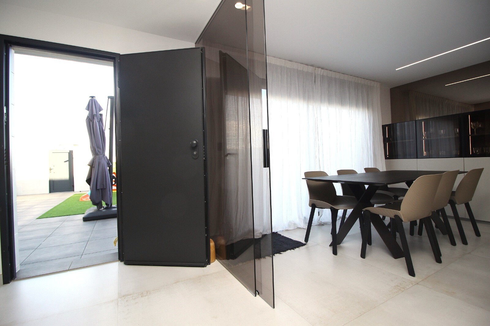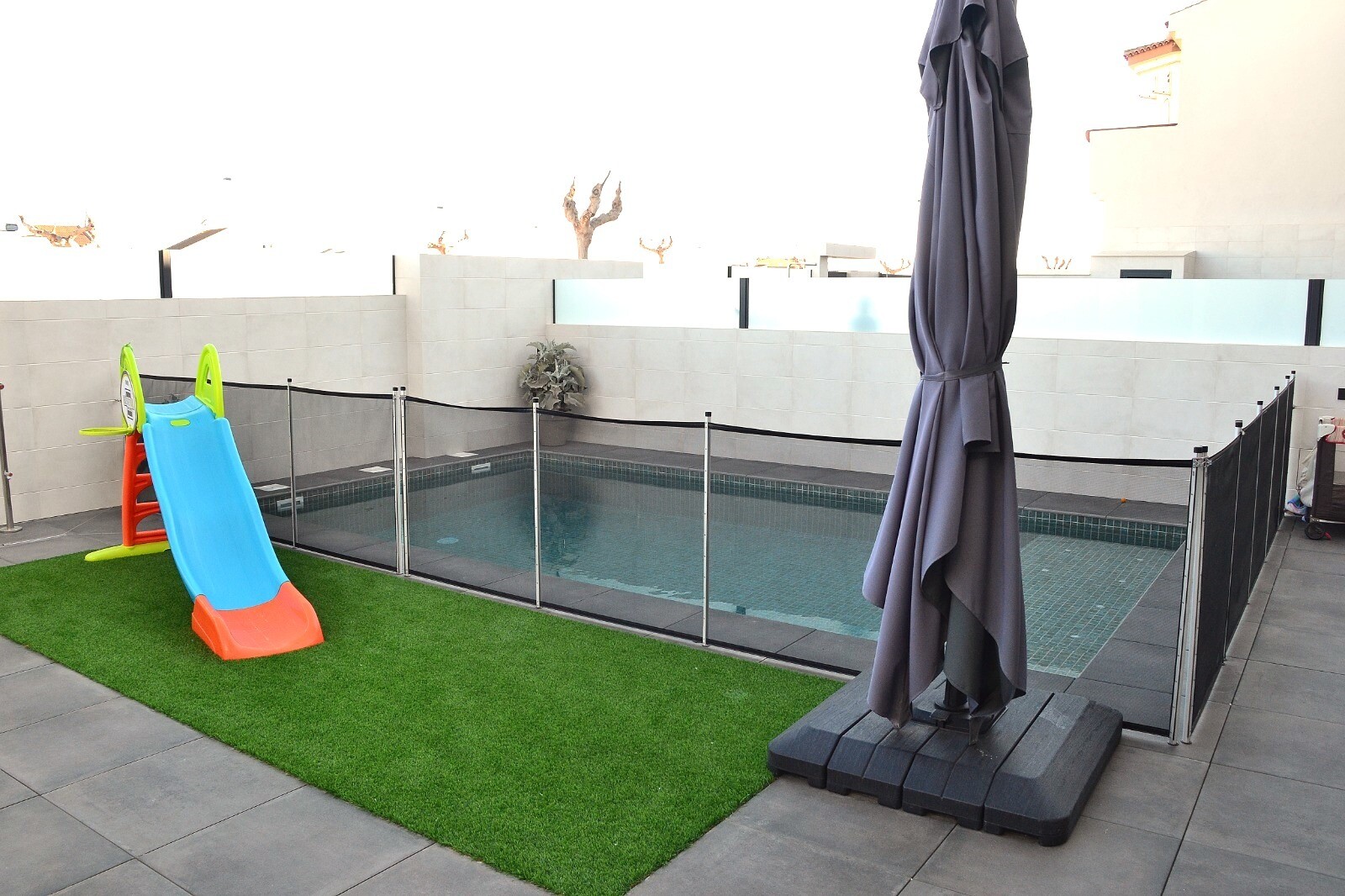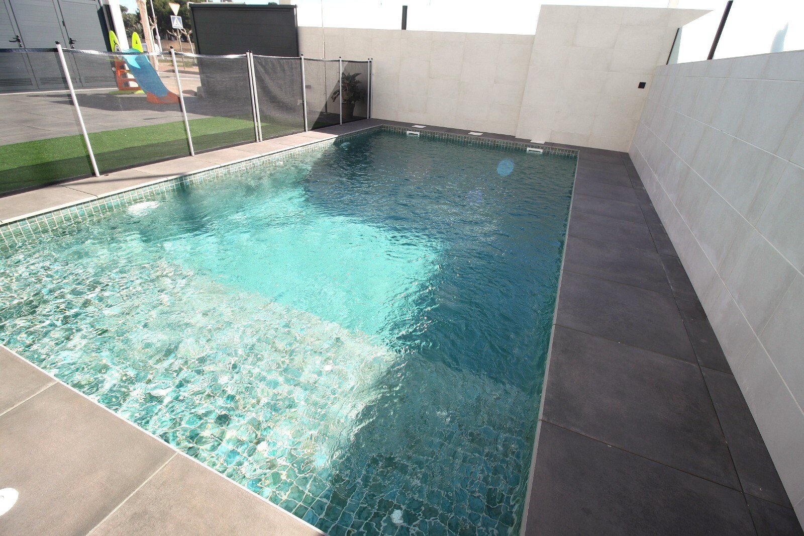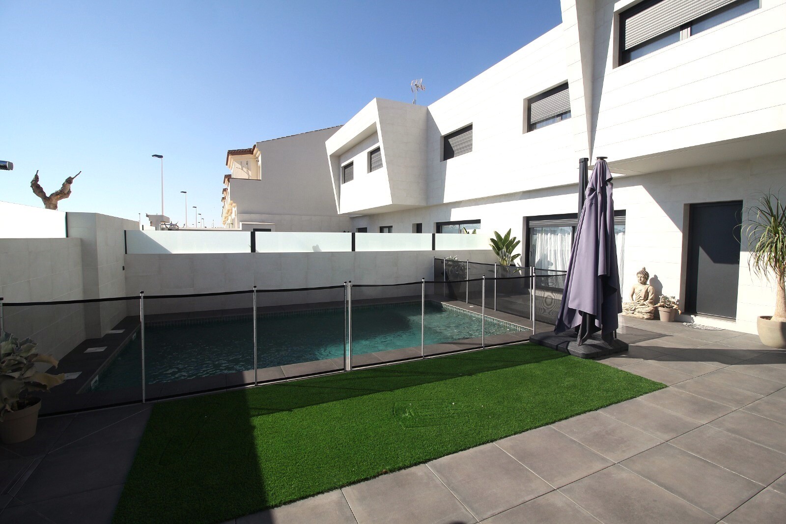 Недавно перепроданный двухквартирный таунхаус в Сан-Педро-дель-Пинатар с 4 спальнями, 2 ванными комнатами и туалетом на открытом воздухе у бассейна 6х4 м со встроенным джакузи. Дом расположен в 3 км от Средиземного моря и в 500 м от центра. Дом полностью меблирован, есть полы с подогревом, кондиционер и кухонная техника. До аэропортов Корвера и Али...канте можно добраться за 30 и 50 минут соответственно.