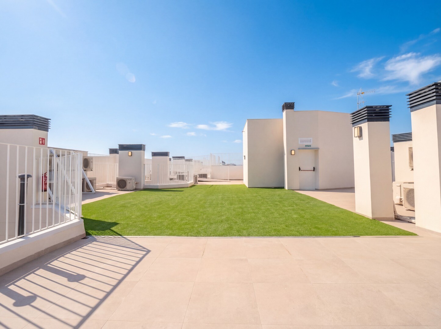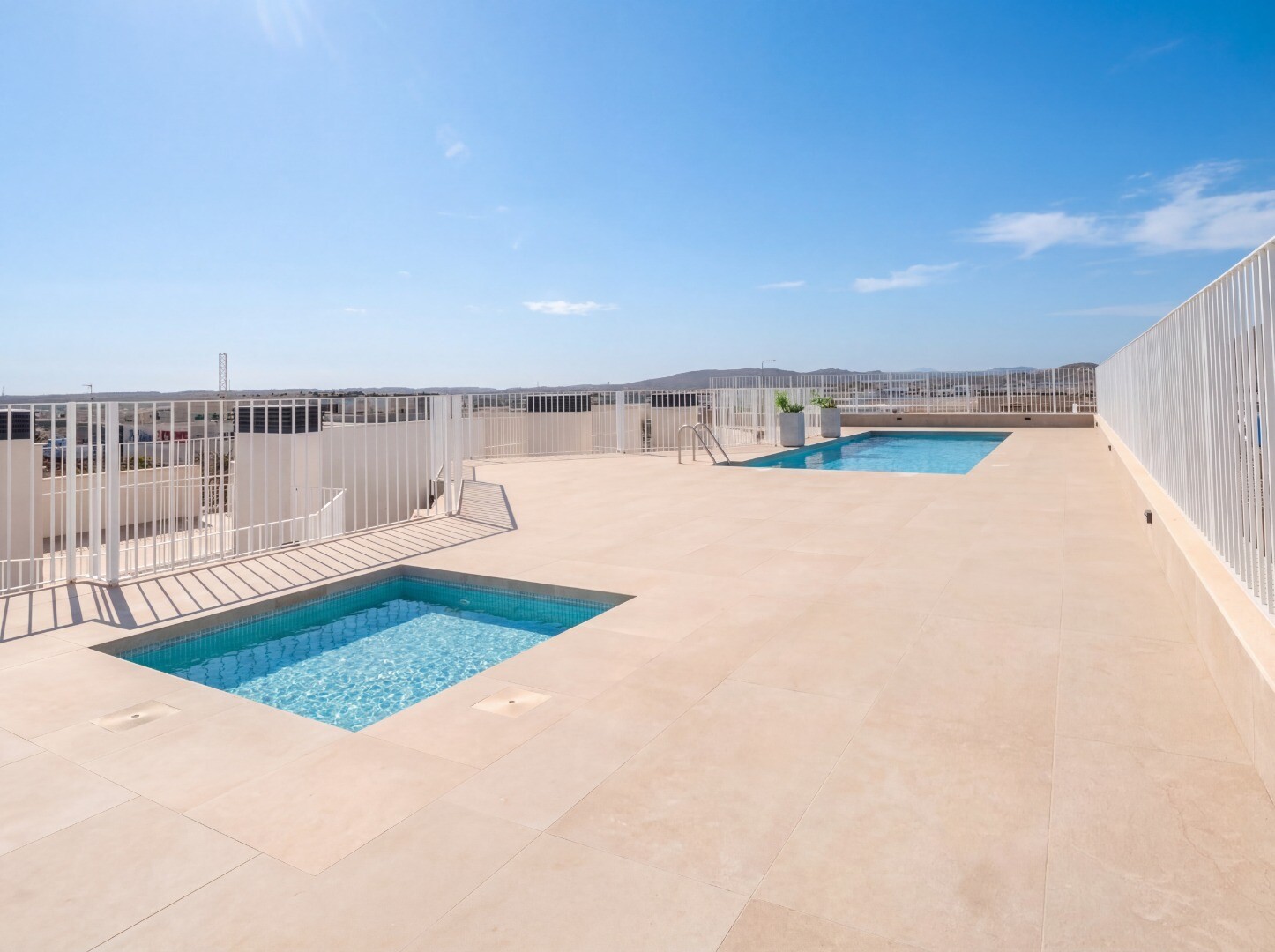 В здании предусмотрены полноценные общие зоны, включая общий бассейн и зону отдыха на крыше, а также озеленённые территории и детскую площадку, идеально подходящие для отдыха и досуга.