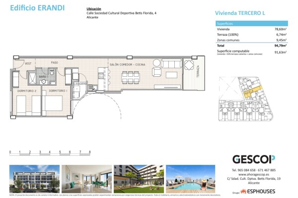 Эта новая квартира расположена на третьем этаже здания ERANDI, в районе Ла Флорида в Аликанте, устоявшемся жилом районе, который сочетает спокойствие и отличное сообщение с центром города. Общая застроенная площадь составляет 91 м² и включает две спальни, одну ванную комнату и просторную гостиную-столовую с кухней открытого типа, выполненную в совр...еменном и функциональном дизайне с максимальным использованием естественного света.