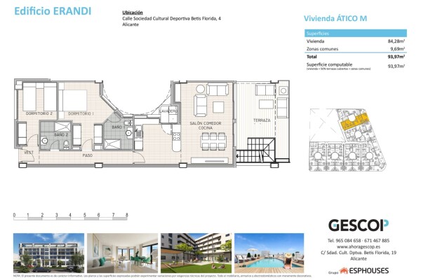 Этот новый пентхаус расположен на последнем этаже здания ERANDI, в обжитом жилом районе Ла Флорида в Аликанте, тихом месте с очень хорошим сообщением с центром города. Общая застроенная площадь составляет 93 м² и включает две спальни, две ванные комнаты и светлую гостиную-столовую с кухней открытого типа, выполненную в современном и функциональном ...дизайне с максимальным использованием естественного света.