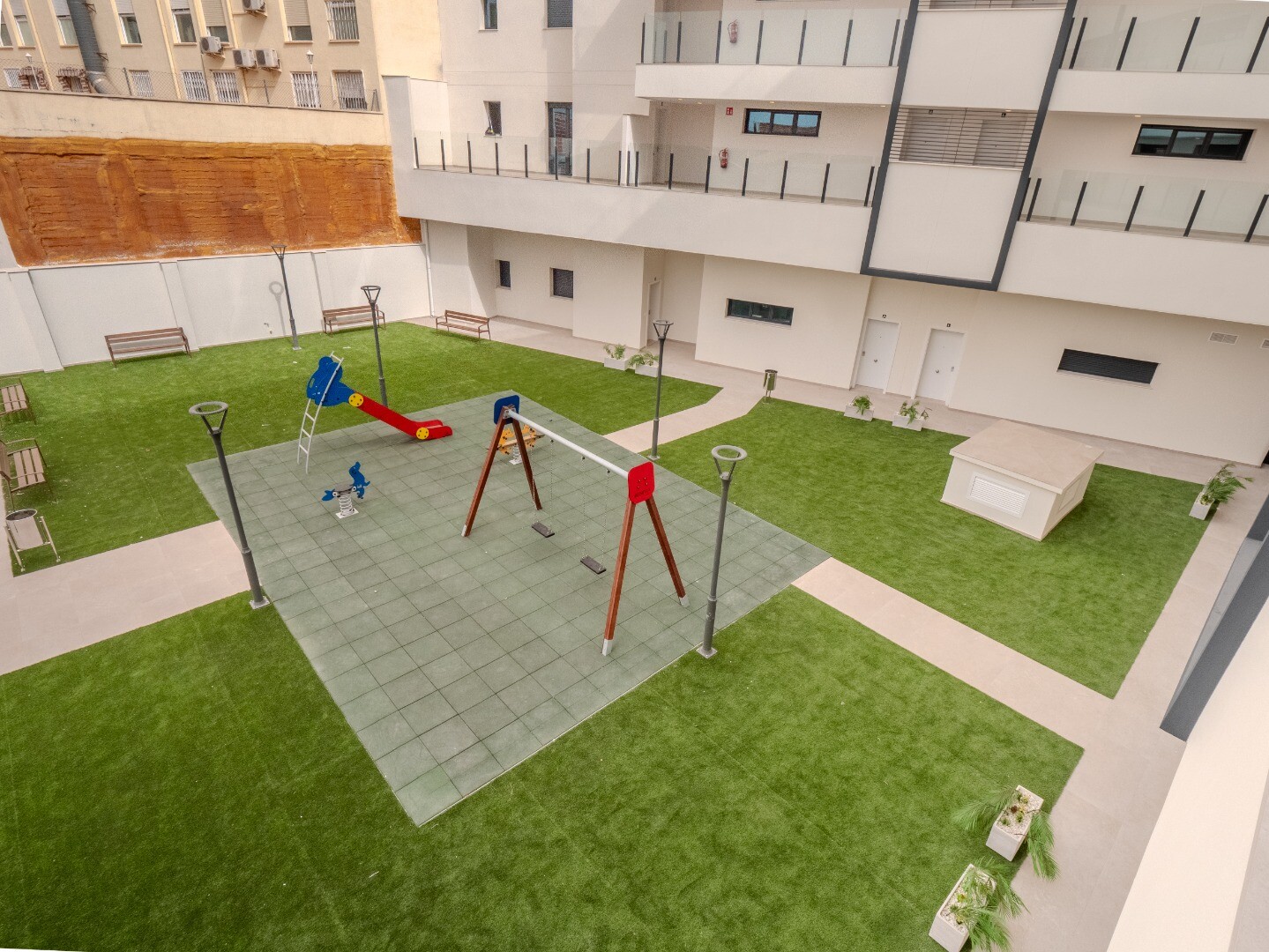 Жилой комплекс предлагает полноценные общие зоны, включая общий бассейн и зону отдыха на крыше, а также озеленённые территории и детскую площадку, идеально подходящие для отдыха и досуга.