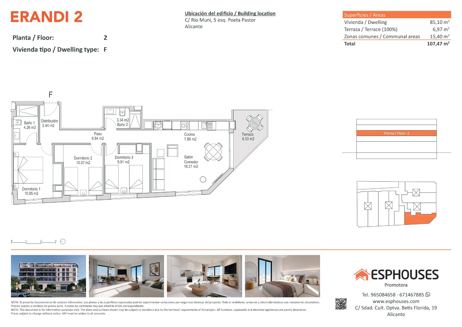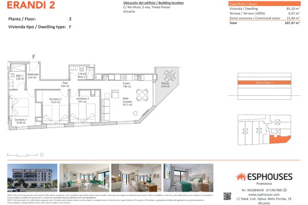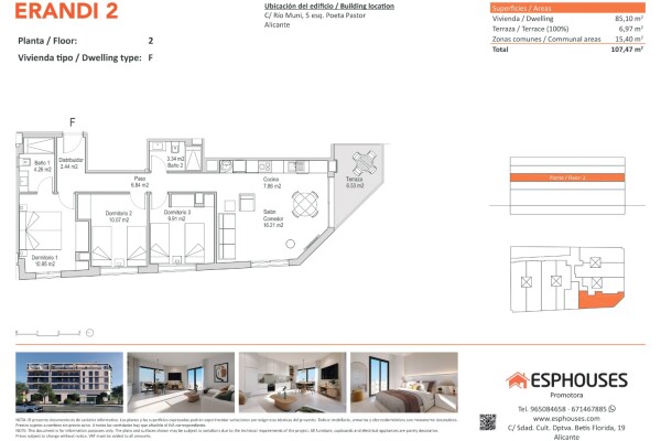 Эта квартира на втором этаже здания ERANDI 2 предлагает идеальное сочетание современного дизайна, функциональности и удобного расположения в районе Ла-Флорида — одном из самых развитых и хорошо связанных районов Аликанте. Площадь квартиры составляет 85,10 м², в ней три спальни с встроенными шкафами, два ванных комнаты, просторная гостиная с открыто...й кухней и терраса площадью 6,97 м² с юго-западной ориентацией, идеально подходящая для наслаждения солнцем в течение всего дня.