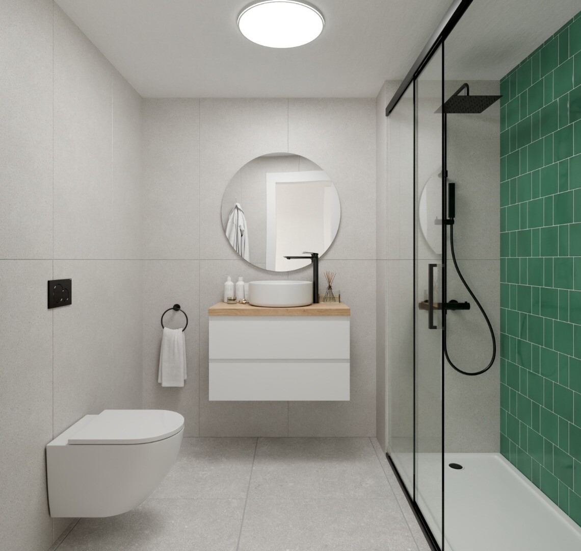 Здание состоит из 24 апартаментов с 2 спальнями, 1 ванной комнатой и гостевым туалетом. Все апартаменты оборудованы полностью укомплектованной кухней с белым ламинатом и бытовой техникой Johnson (духовка, микроволновая печь, индукционная плита, вытяжка, посудомоечная машина, стиральная машина и холодильник с морозильной камерой), мебелью, электриче...скими жалюзи, домофоном и полностью отделанными ванными комнатами с раковинами, зеркалами и душевой перегородкой. Работает кондиционер (холод/тепло) через воздуховоды, встроенные шкафы с раздвижными дверями и системой плавного закрывания. Большинство апартаментов включают подземное парковочное место, а 12 — даже подземное кладовое помещение.