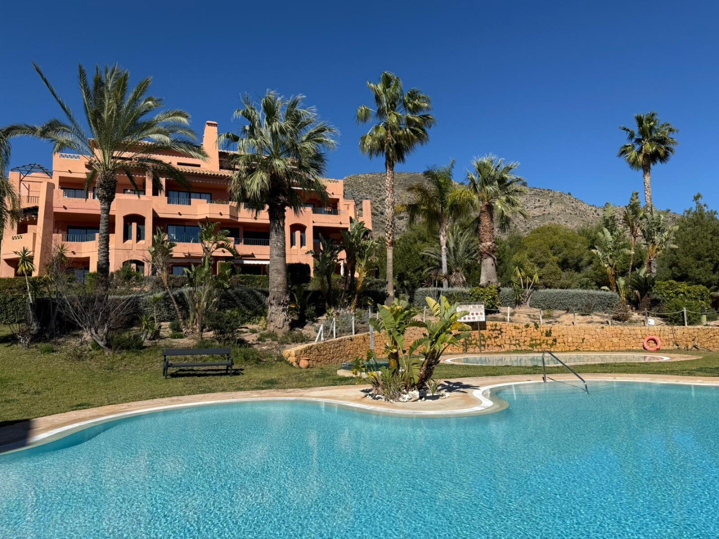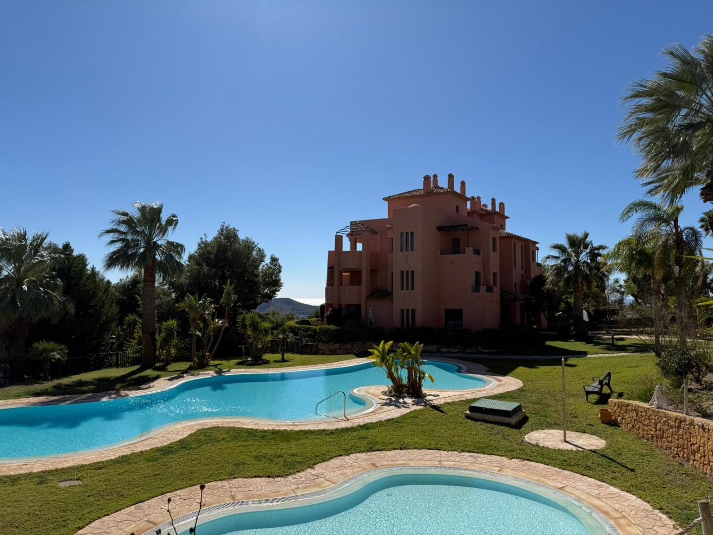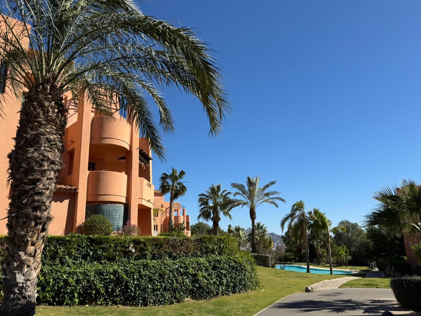 Комплекс располагает двумя общими бассейнами и просторными зелёными зонами с деревьями и натуральным газоном, создающими спокойную и приятную атмосферу.