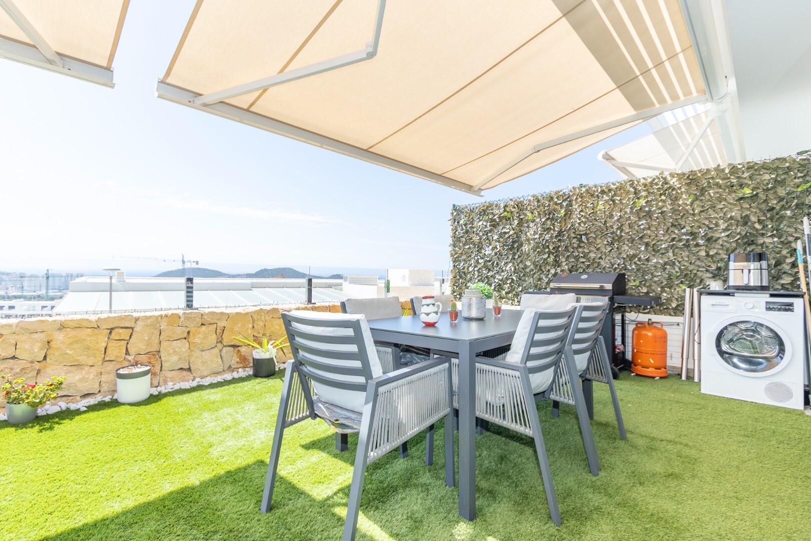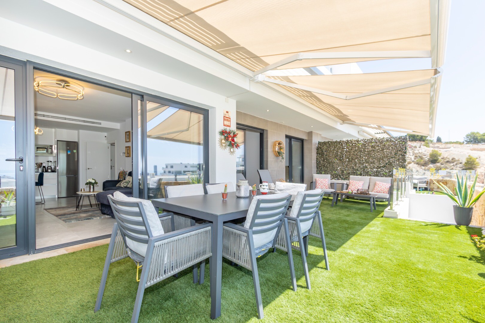 Эти современные апартаменты в Финистрате, провинция Аликанте, предлагают роскошный и комфортный образ жизни. Построенные в 2022 году, они включают две просторные спальни, обе с прямым выходом на впечатляющую террасу, откуда открываются потрясающие виды на море и город Бенидорм. В спальнях встроенные шкафы и две ванные комнаты, одна из которых в люк...се, обе с душевыми кабинами. Большая гостиная-столовая соединена с современной кухней, полностью оснащенной новейшей бытовой техникой, создавая идеальное пространство для семейного отдыха. Кроме того, апартаменты оснащены центральным кондиционированием воздуха, продвинутой системой умного дома и интеллектуальной сигнализацией для дополнительной безопасности.