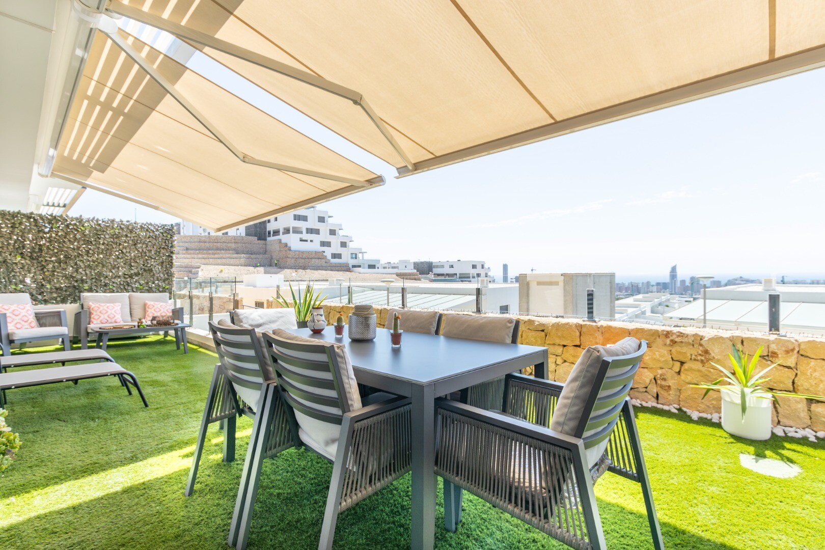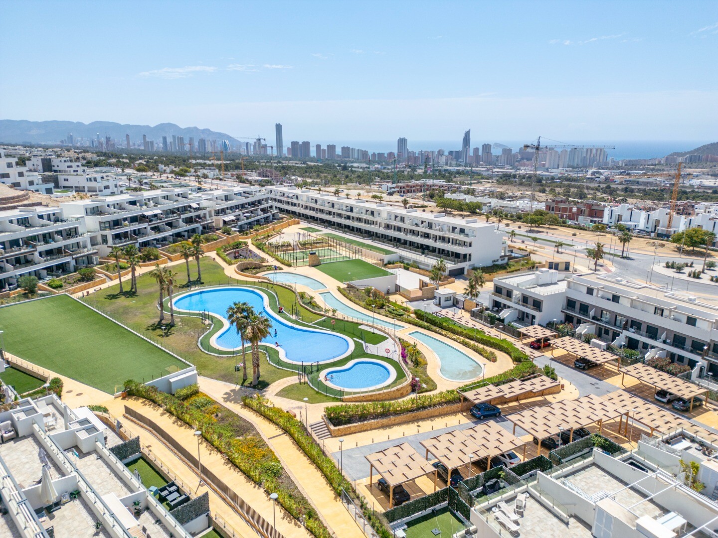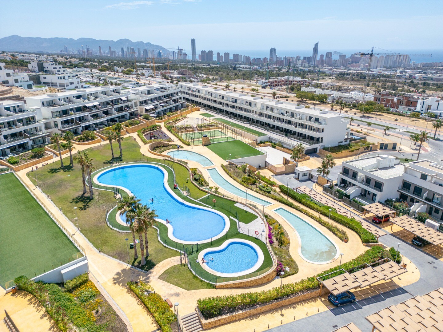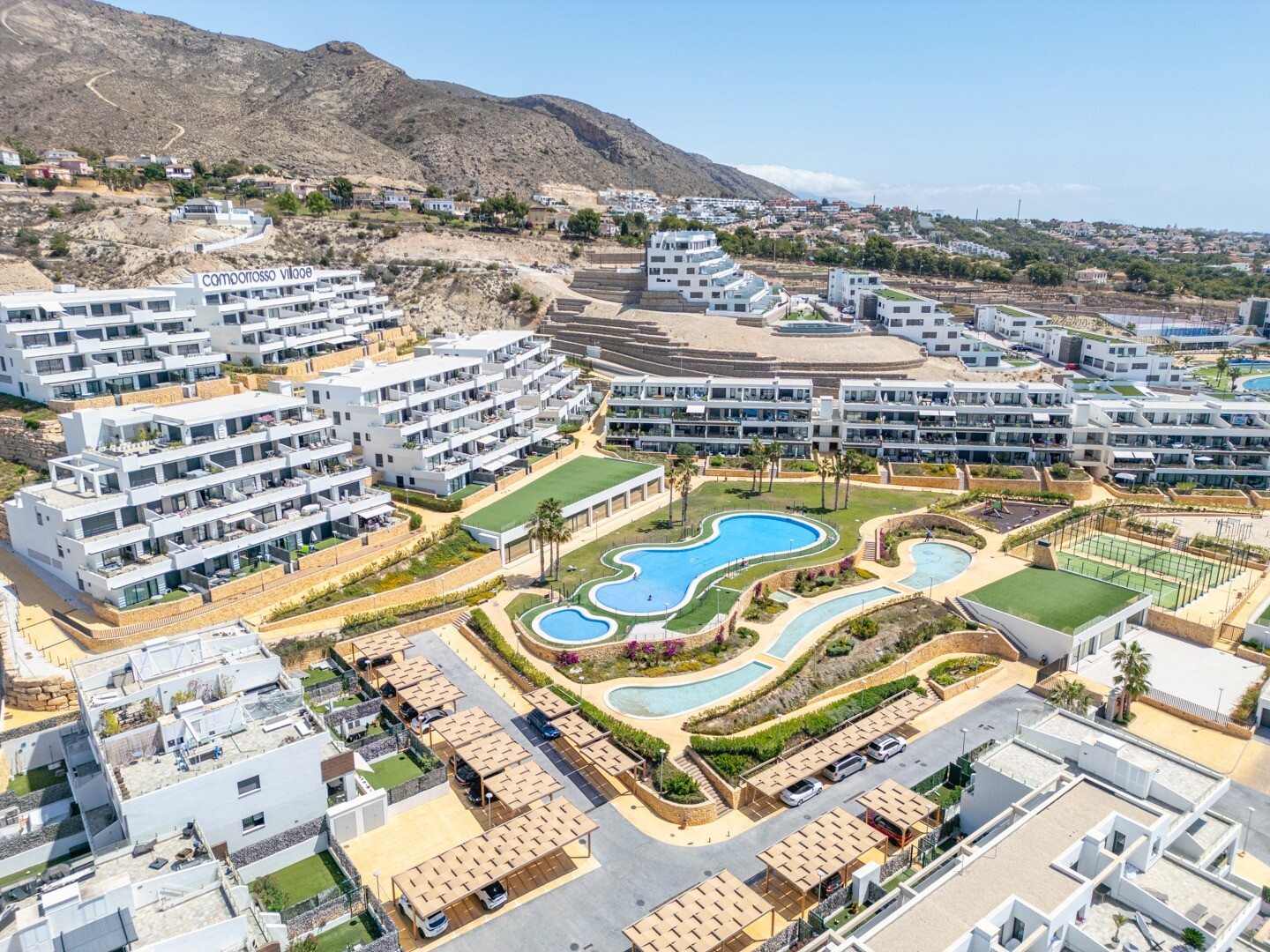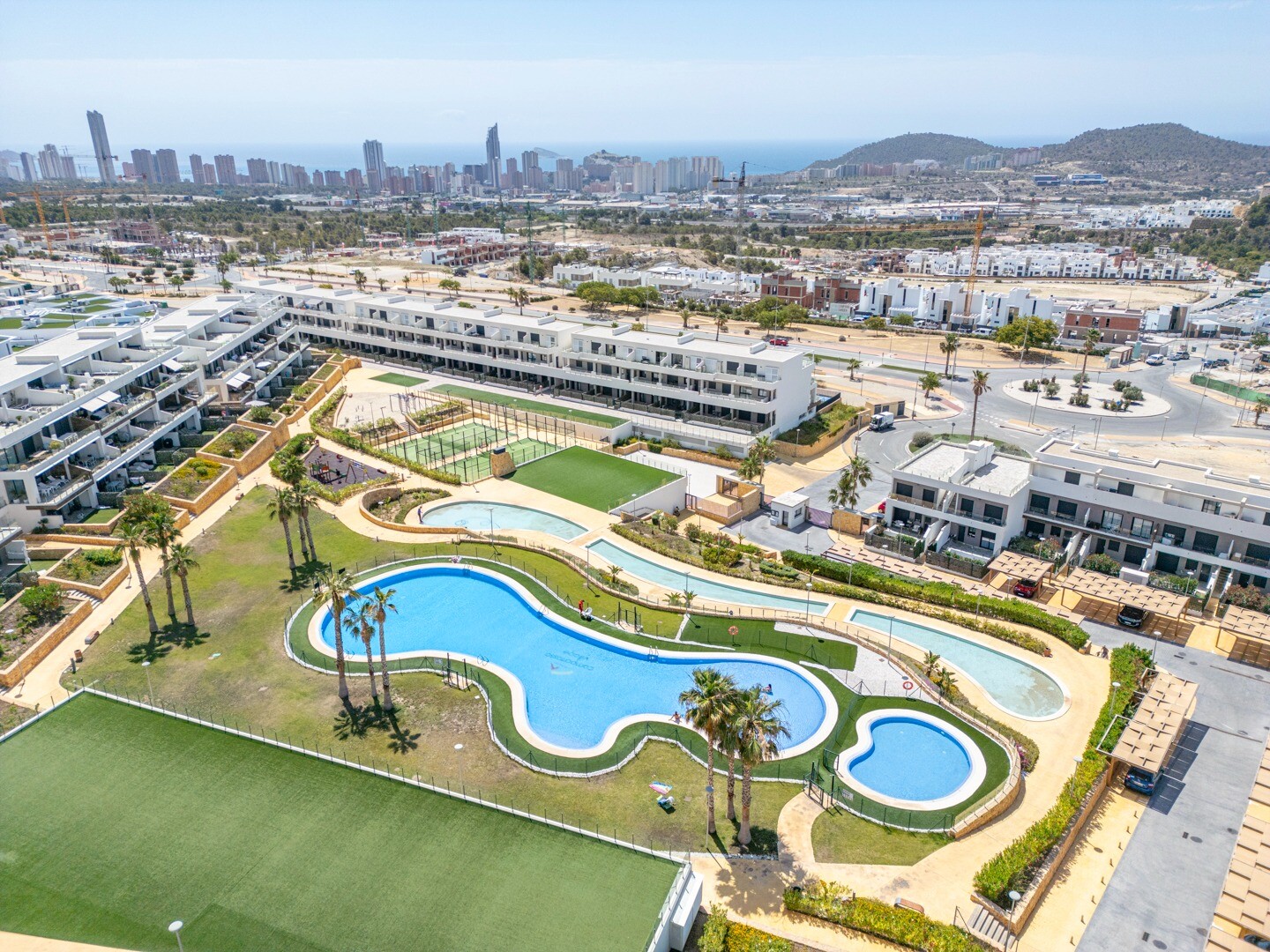 Что касается расположения, апартаменты стратегически расположены очень близко к городу Бенидорм и всего в 3 км от пляжа, что позволяет быстро добраться до побережья на автомобиле. Кроме того, они имеют отличные связи для легкого доступа к городу Аликанте и другим близлежащим районам, обеспечивая идеальное сочетание спокойствия и удобства.
