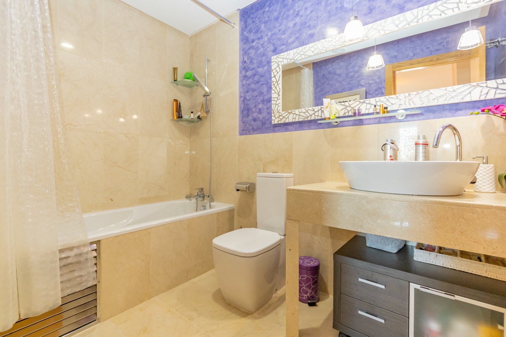 Квартира на первом этаже, в закрытом жилом комплексе, с прямым выходом на общую территорию с бассейном и садами. Недвижимость состоит из 2 спален и 2 ванных комнат, отдельной кухни с прачечной и патио, гостиная, а также обе спальни с выходом на большую застекленную террасу. Жилой комплекс был построен с использованием высококачественных материалов ...