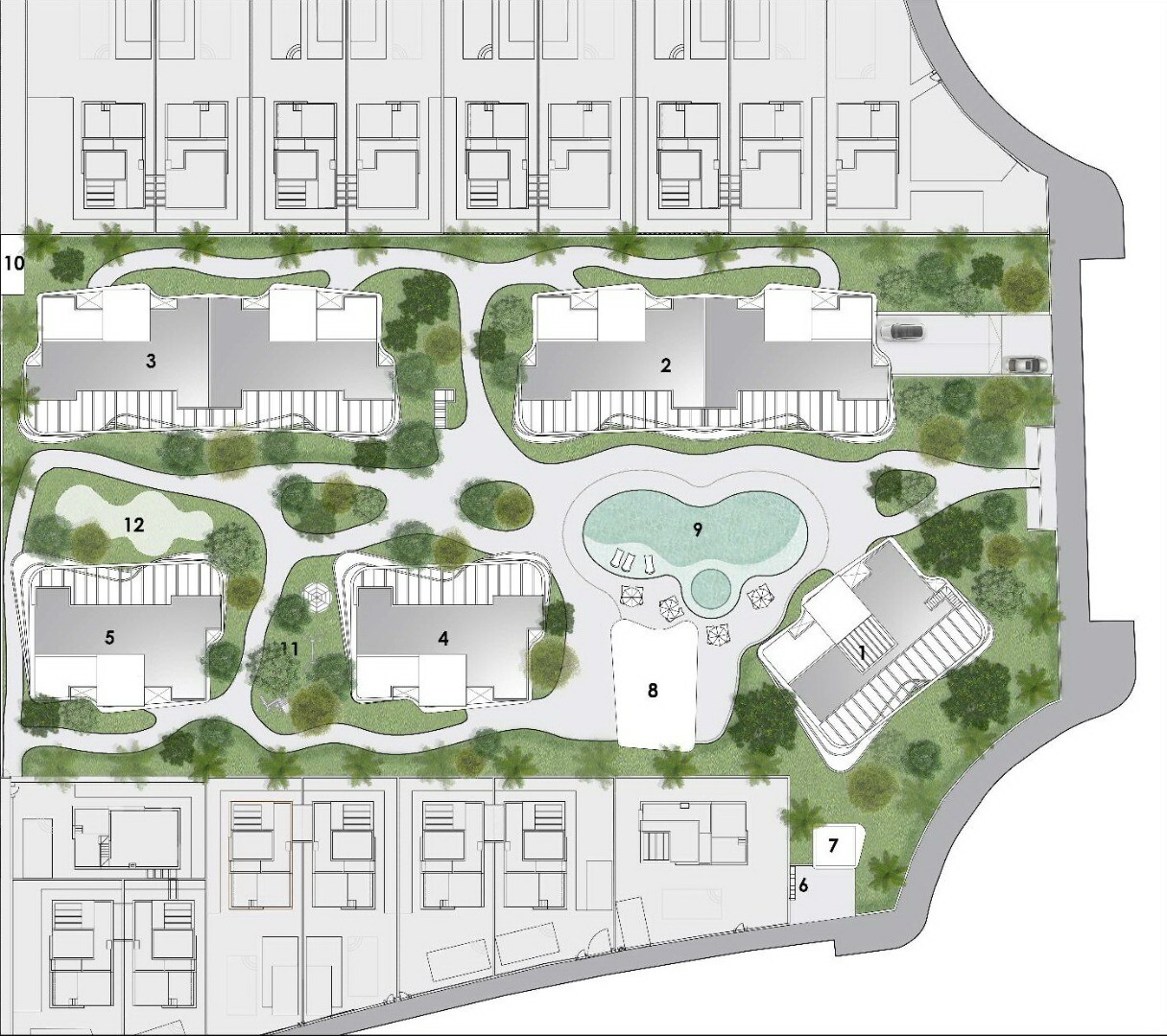 Комплекс закрытого типа с бассейном, зеле...