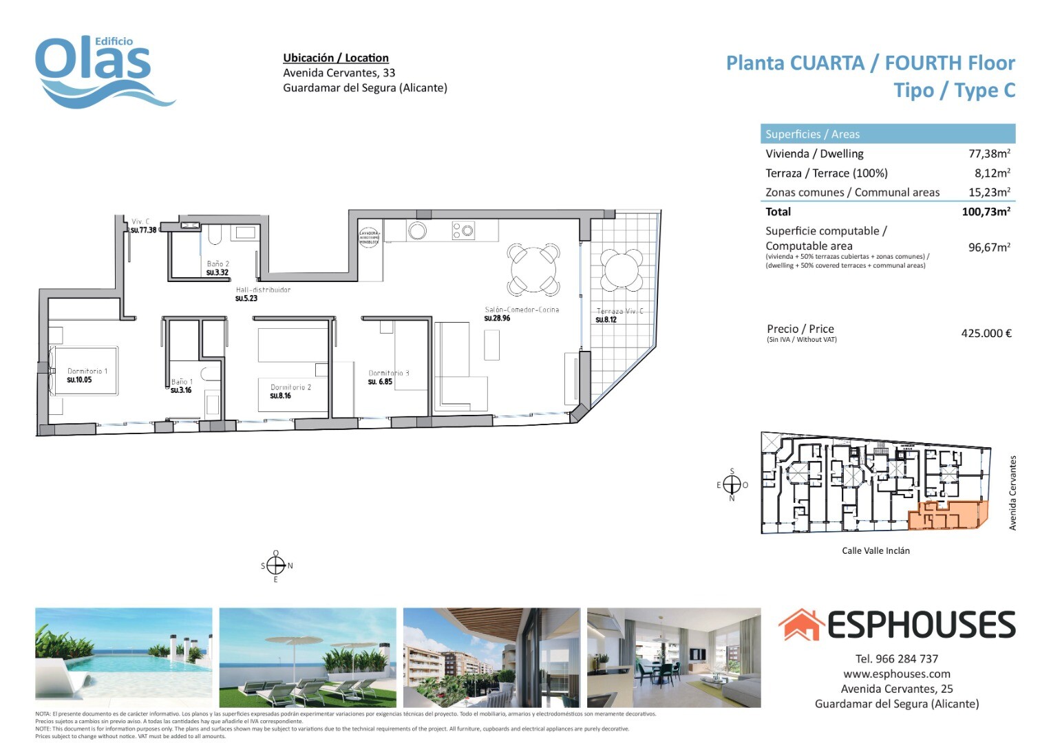 Расположенный в одном из самых востребованных районов Гуардамар-дель-Сегура, на престижном проспекте Сервантеса, Edificio Olas станет идеальным вариантом благодаря близости к пляжу и широкому спектру услуг. Это великолепное здание предложит своим жильцам уникальные возможности, в том числе бассейн и солярий на крыше.