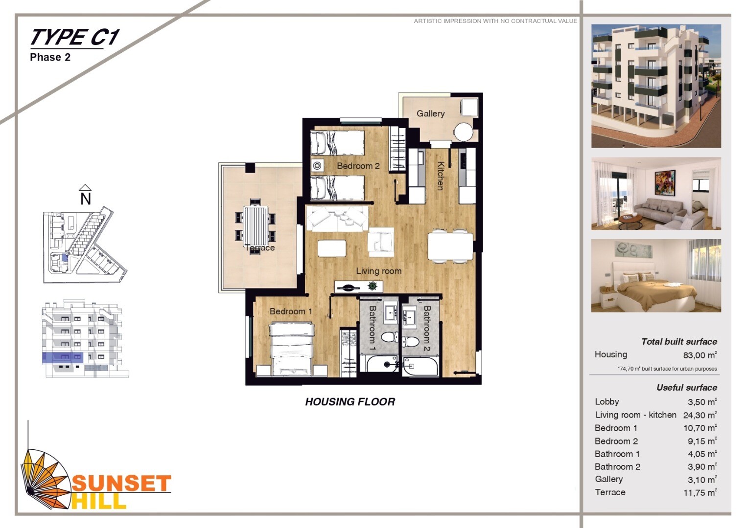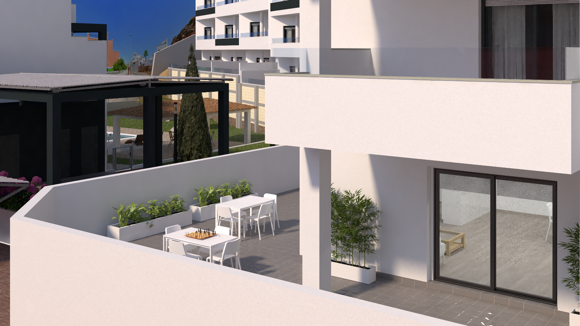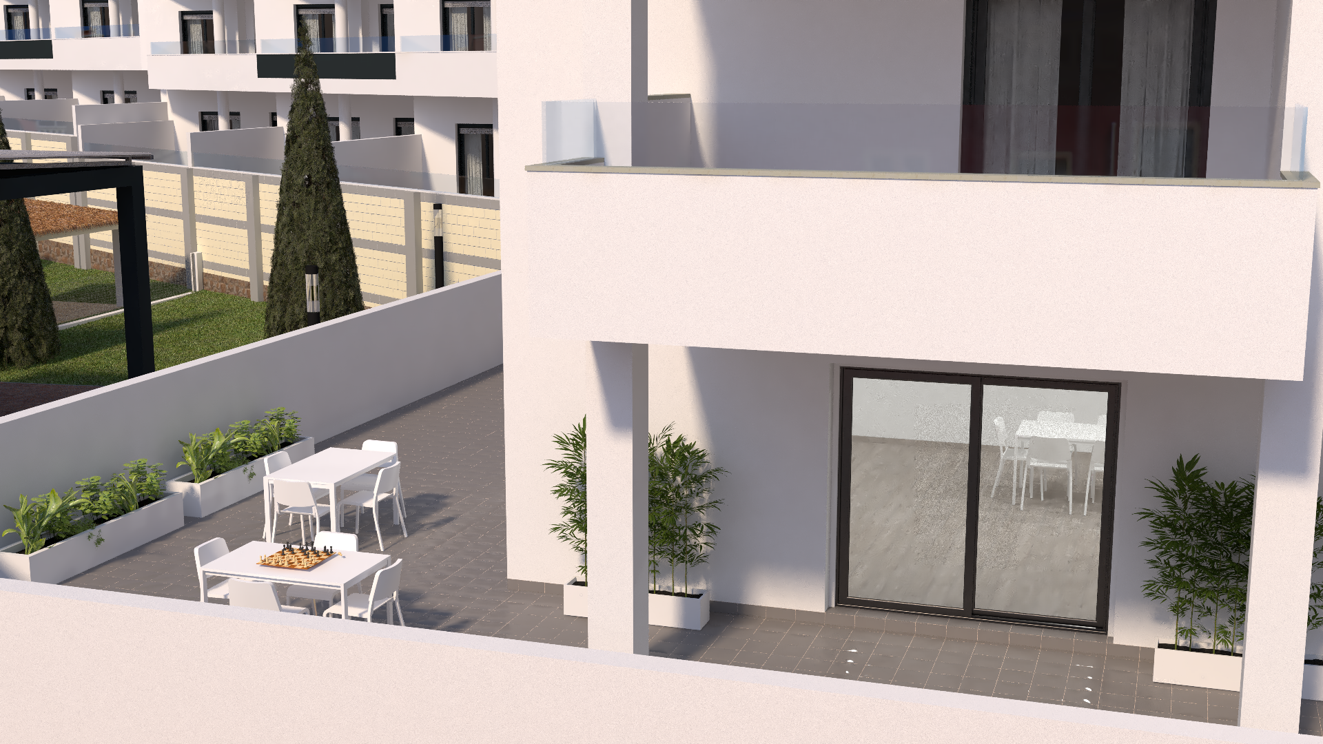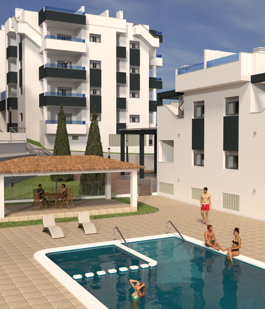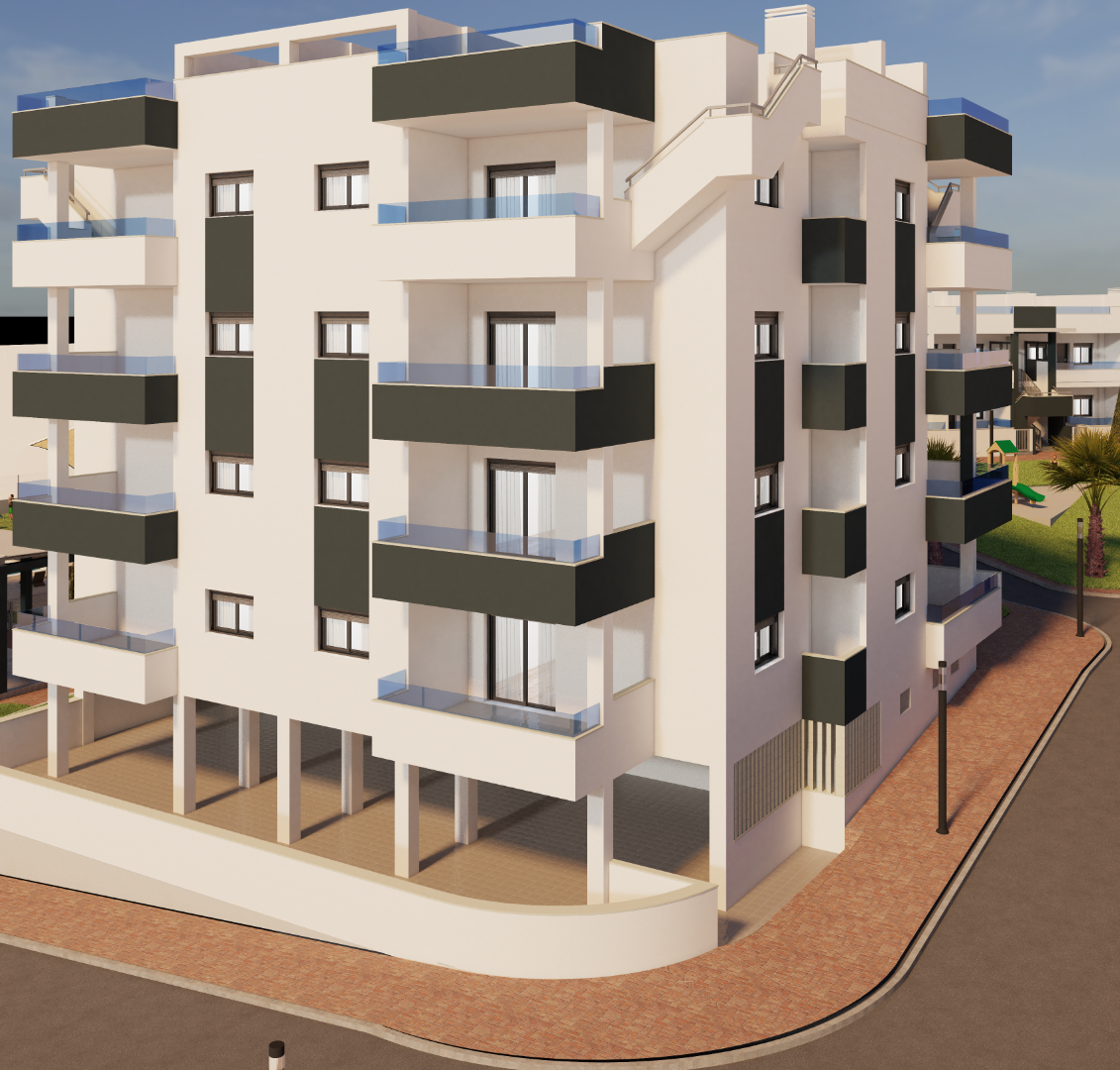Комплекс будет состоять из 50 домов различной типологии. Дома строятся в четыре очереди. Фаза I касается комплекса из 8 квартир, 4 из которых находятся на первом этаже с полуподвалом, которые в принципе предназначены для гаража, но в которых можно сделать разделение и имеют жилую площадь около 24 кв.м. м2 и 4 квартиры на верхнем этаже с солярием. Ф...аза II представляет собой 4-этажное здание, по 4 квартиры на этаже, всего 16 квартир, к каждой из которых имеется пристроенная кладовая. Фаза III и IV будет сопоставима с Фазой I. Дома на обеих фазах, за исключением 4 домов на первом этаже в Фазе I, будут иметь надземные парковочные места, связанные с домами, с предварительной установкой для электромобилей. На нижних этажах есть собственный гараж с автоматическими секционными воротами с дистанционным управлением. В проекте будет открытая общественная зона с площадкой для барбекю и туалетами, а также две крытые общественные зоны, одна из которых подойдет для организации встреч, с телевизором, холодильником и т. д., а другая, вероятно, будет тренажерным залом. Дома поставляются с канальным кондиционированием и установленным рекуператором тепла, полностью отделанными санузлами и кухонной техникой.