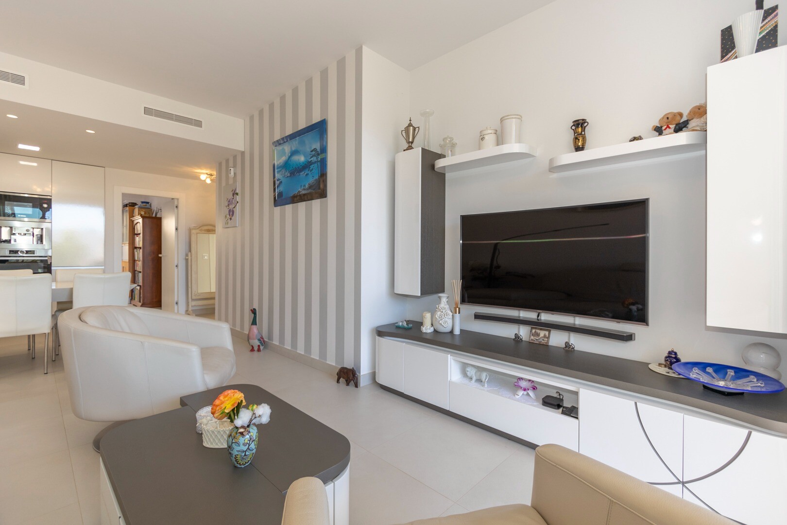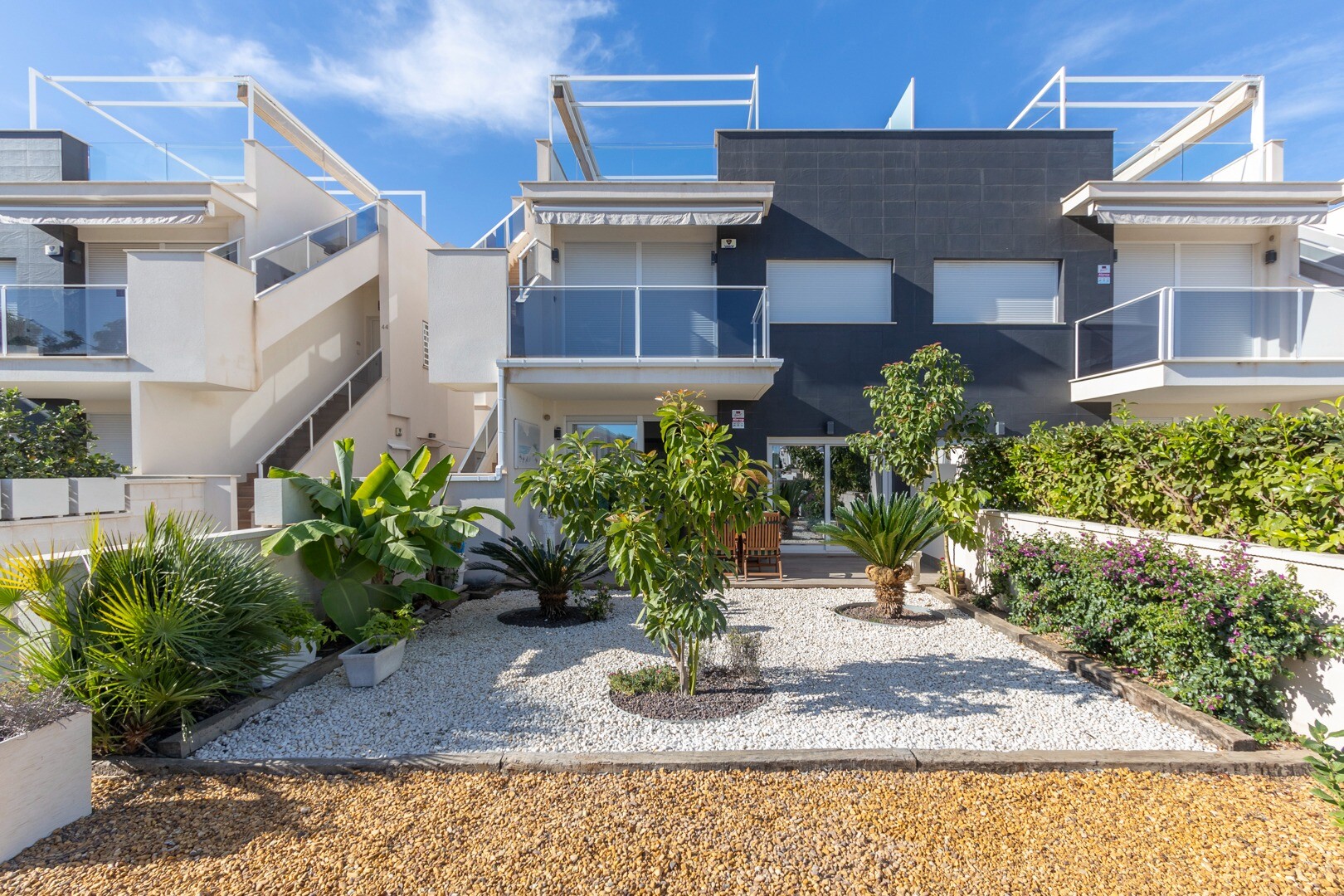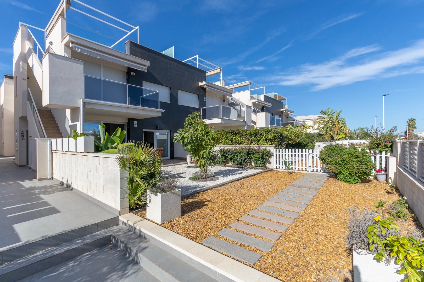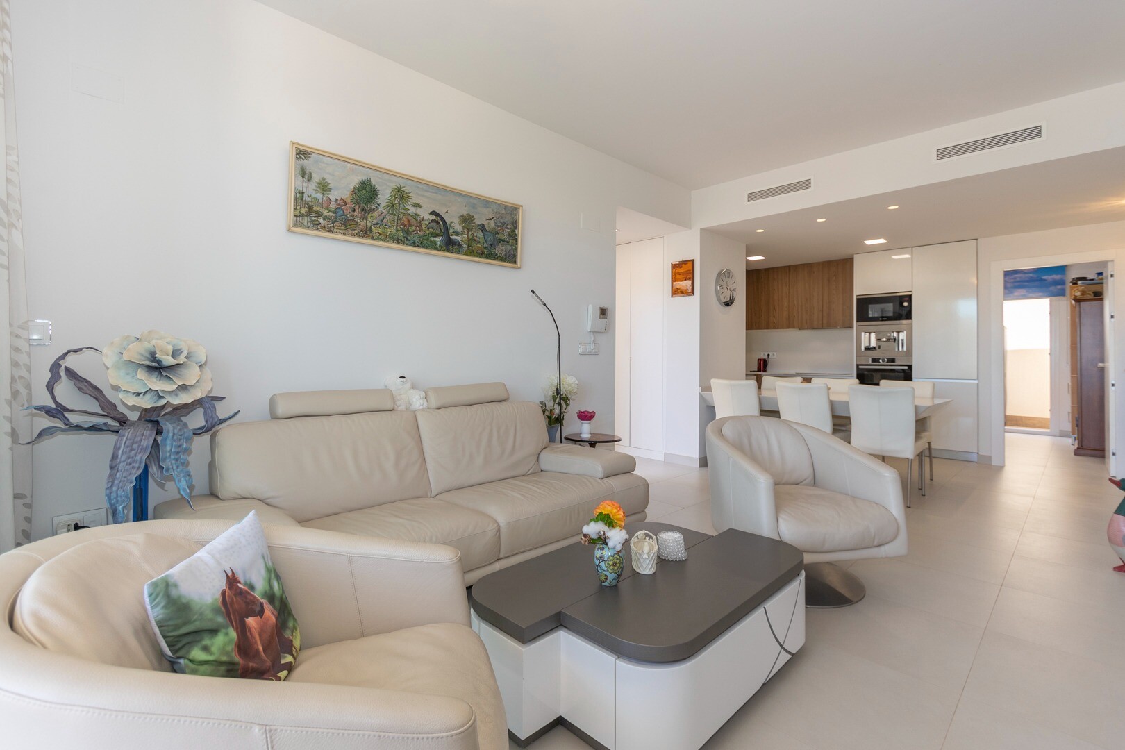 Вы входите в дом через небольшой холл, который переходит в большую гостиную и открытую ку...хню с большими раздвижными стеклянными дверями, которые выходят на большую террасу площадью 50 м2. На кухне есть все удобства современной кухни, включая встроенную кофеварку. В квартире просторные спальни с собственной ванной комнатой в главной спальне и большими раздвижными стеклянными дверями, ведущими на террасу.
