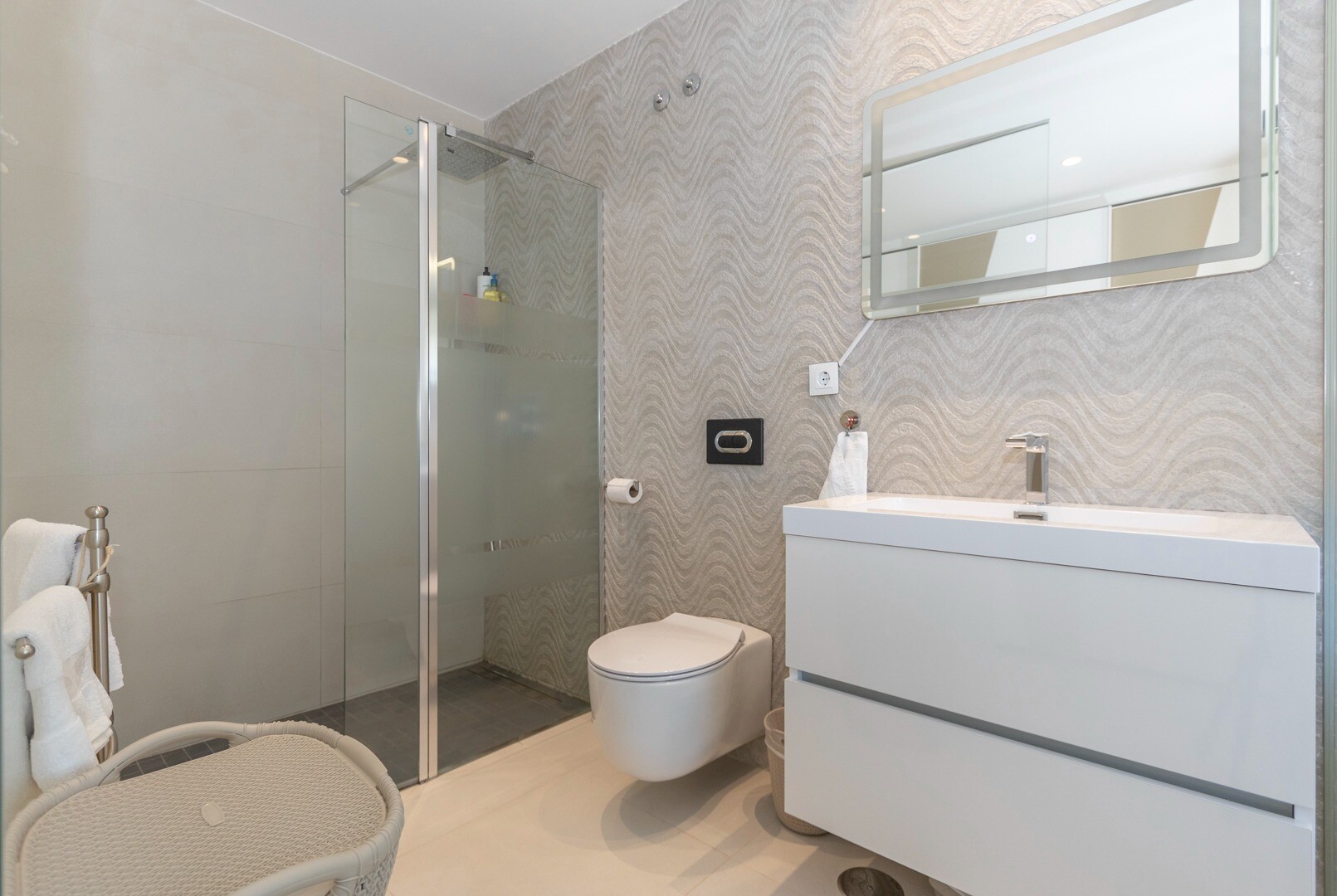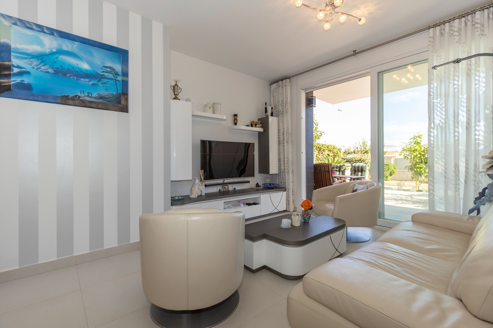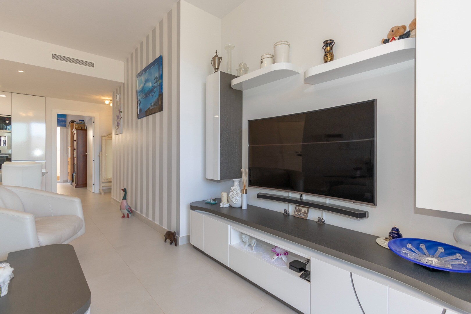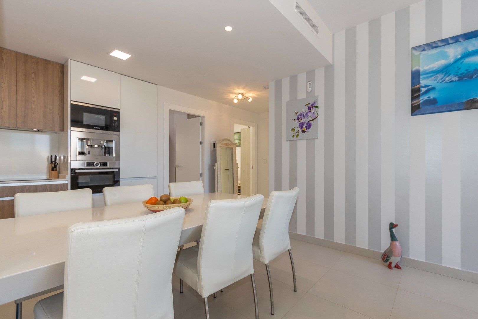 Вы входите в дом через небольшой холл, который переходит в большую гостиную и открытую ку...хню с большими раздвижными стеклянными дверями, которые выходят на большую террасу площадью 50 м2. На кухне есть все удобства современной кухни, включая встроенную кофеварку. В квартире просторные спальни с собственной ванной комнатой в главной спальне и большими раздвижными стеклянными дверями, ведущими на террасу.