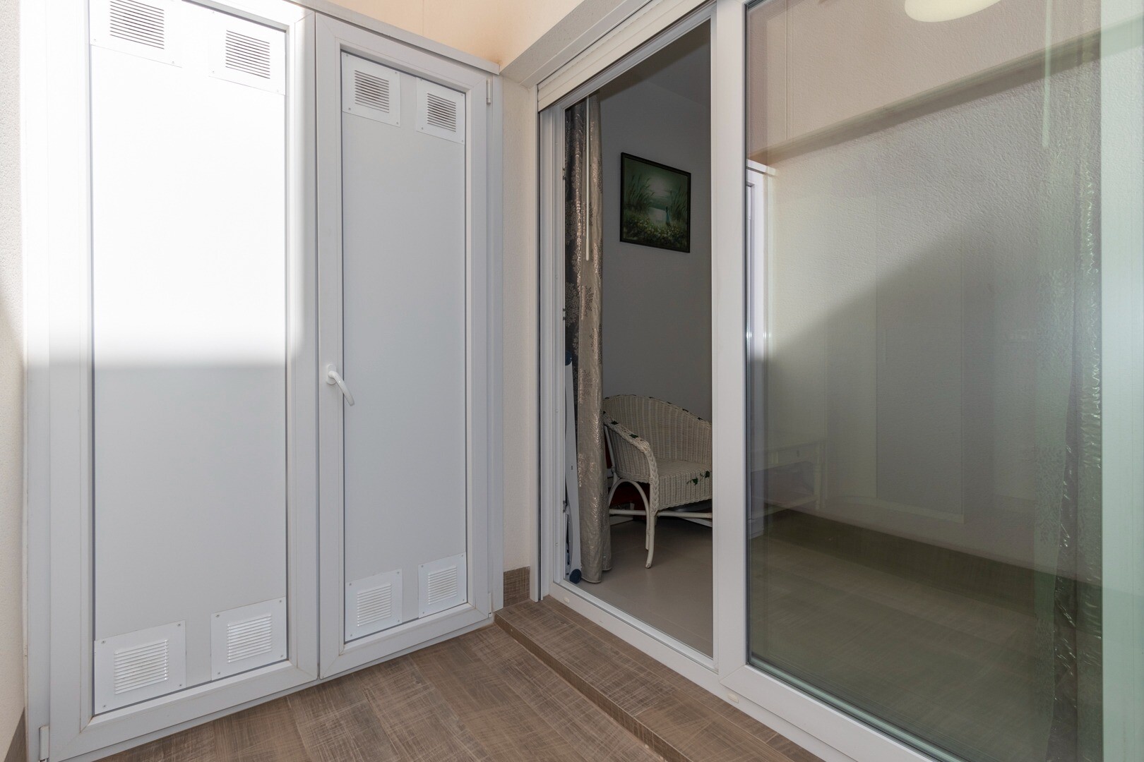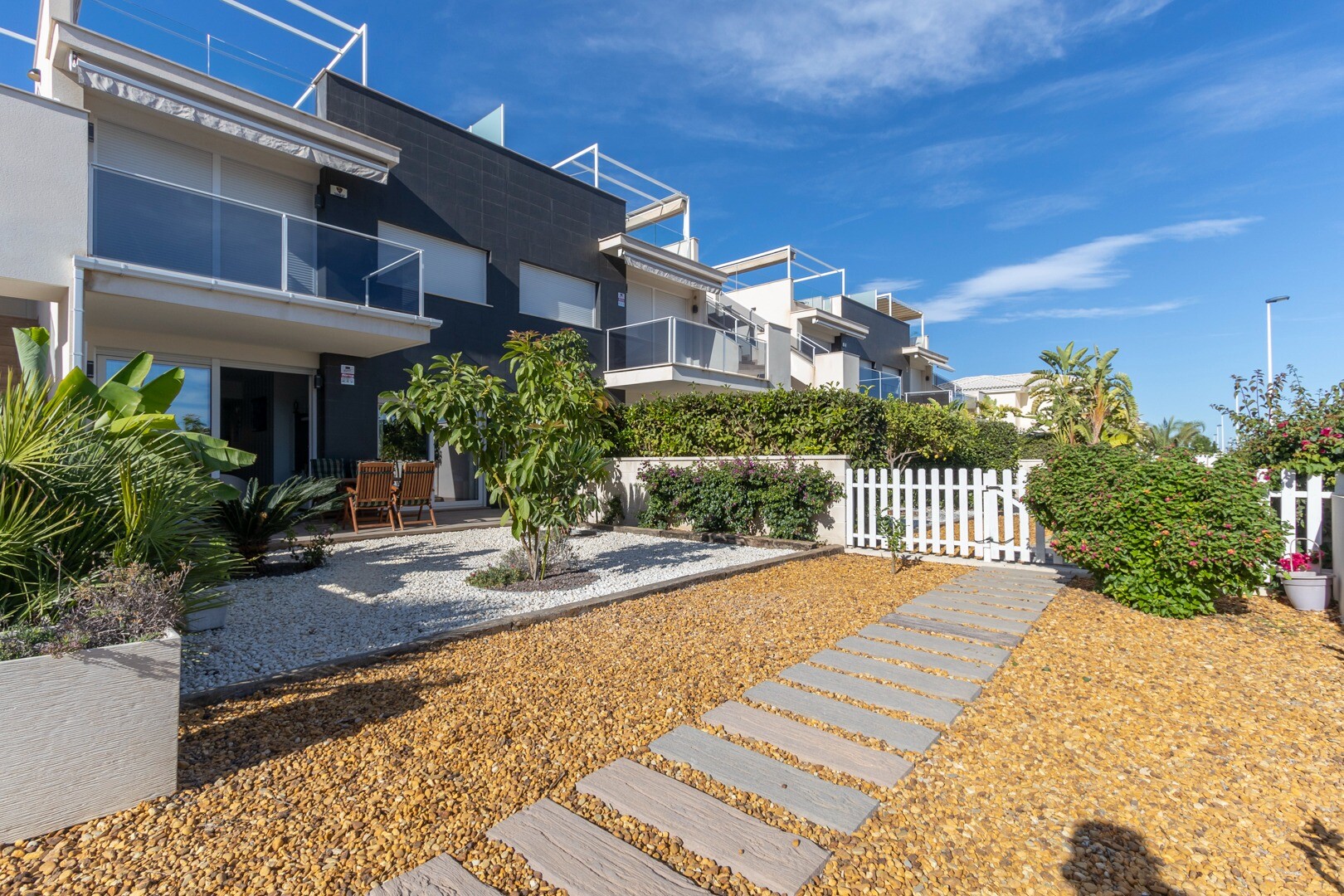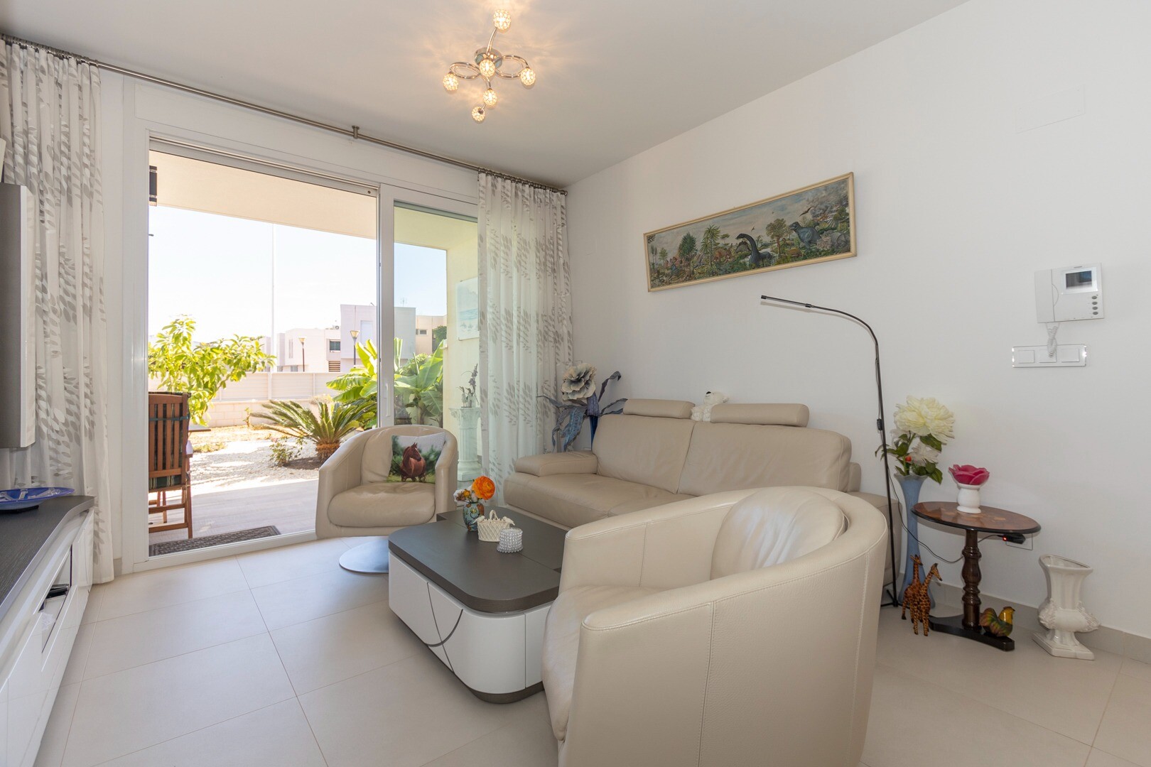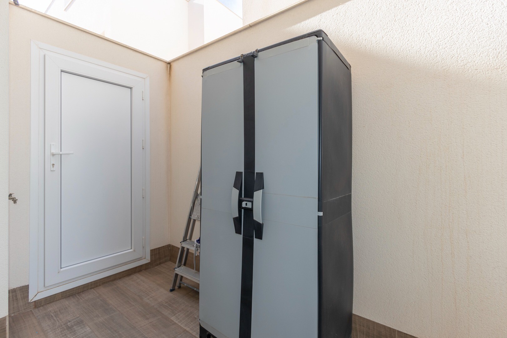 В квартире встроенный кондиционер во всех комнатах и полы с подогревом. За квартирой также есть большой внутренний дворик площадью 10 м2, это пространство сзади, которое можно использовать как кладовую и которое обеспечивает естественное освещение. Фасад состоит из большой террасы и ухоженного сада с различными растениями и банановым деревом.