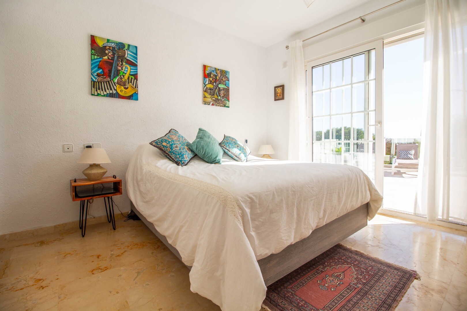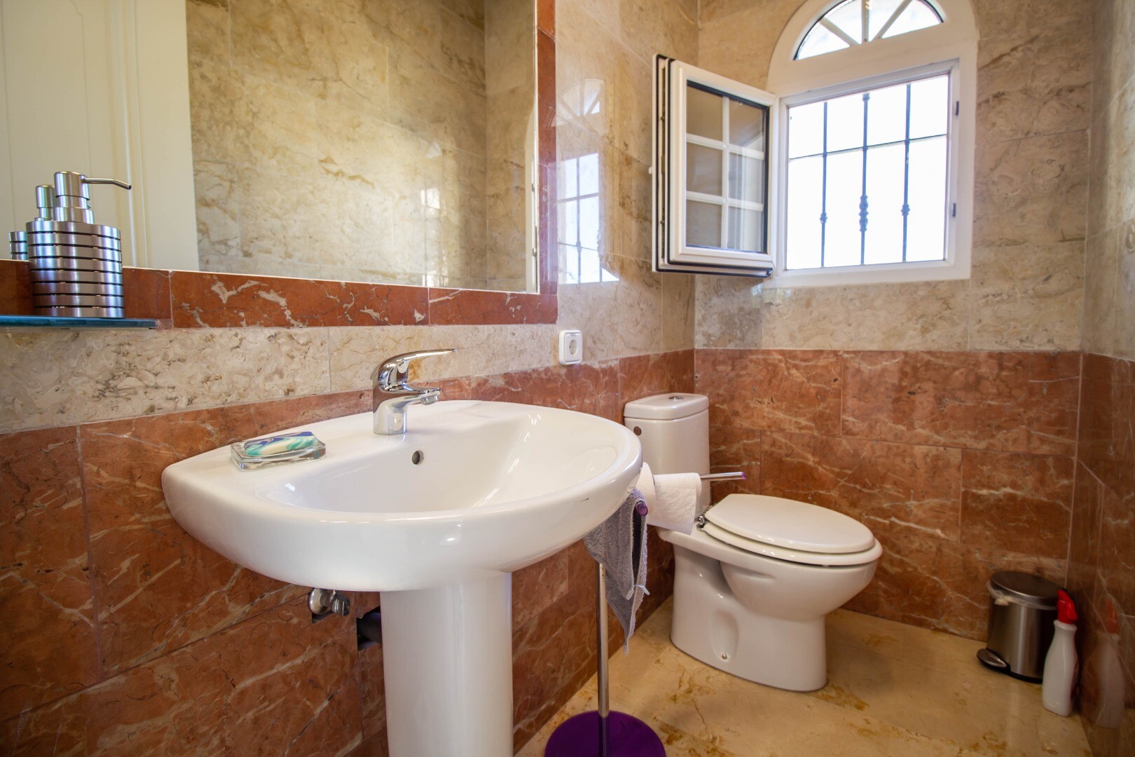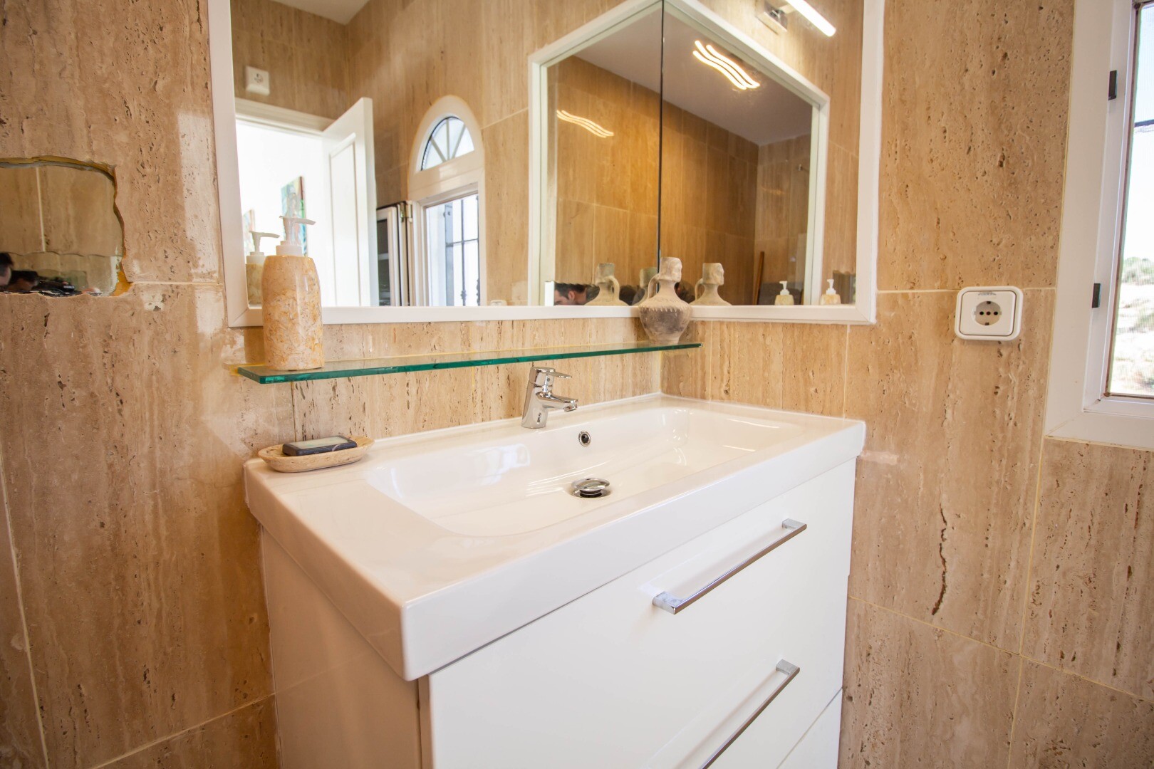 Он распределен на двух этажах: на первом этаже есть: офис, 4 спальни, 2 ванные комнаты и туалет. Три спальни имеют прямой выход на террасу и виды.