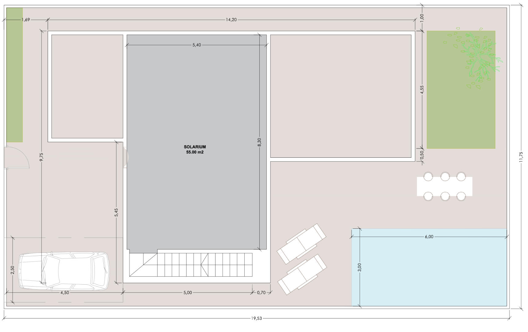 Солярий 55м2. Бассейн 5,40м х 3м